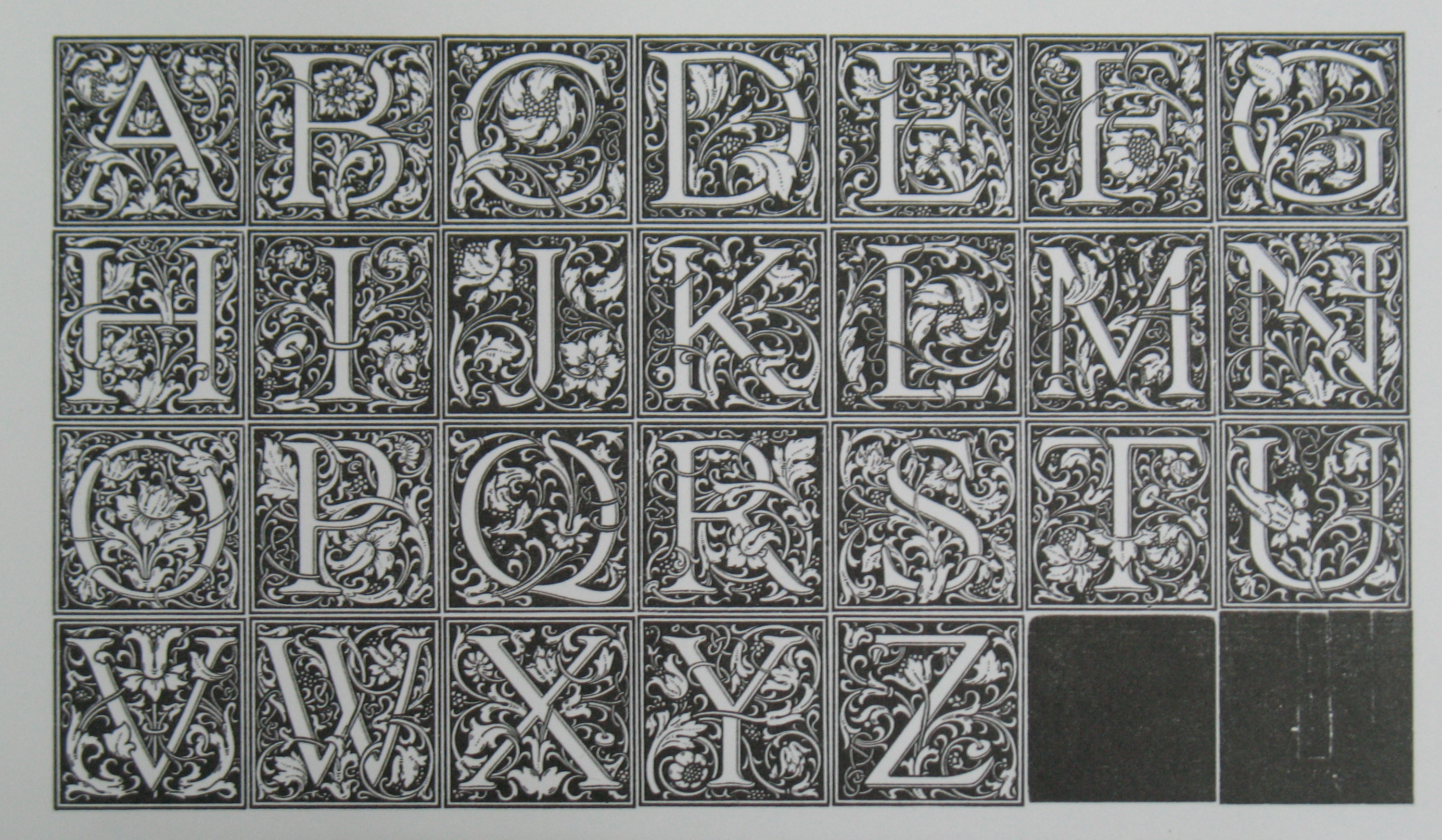 60-point Goudy Cloister Initials. The extra types are supposed to be tint blocks but their matrices were in poor shape and they did not turn out very well. Clearly I have to do a better job of cleaning my type after proofing these.