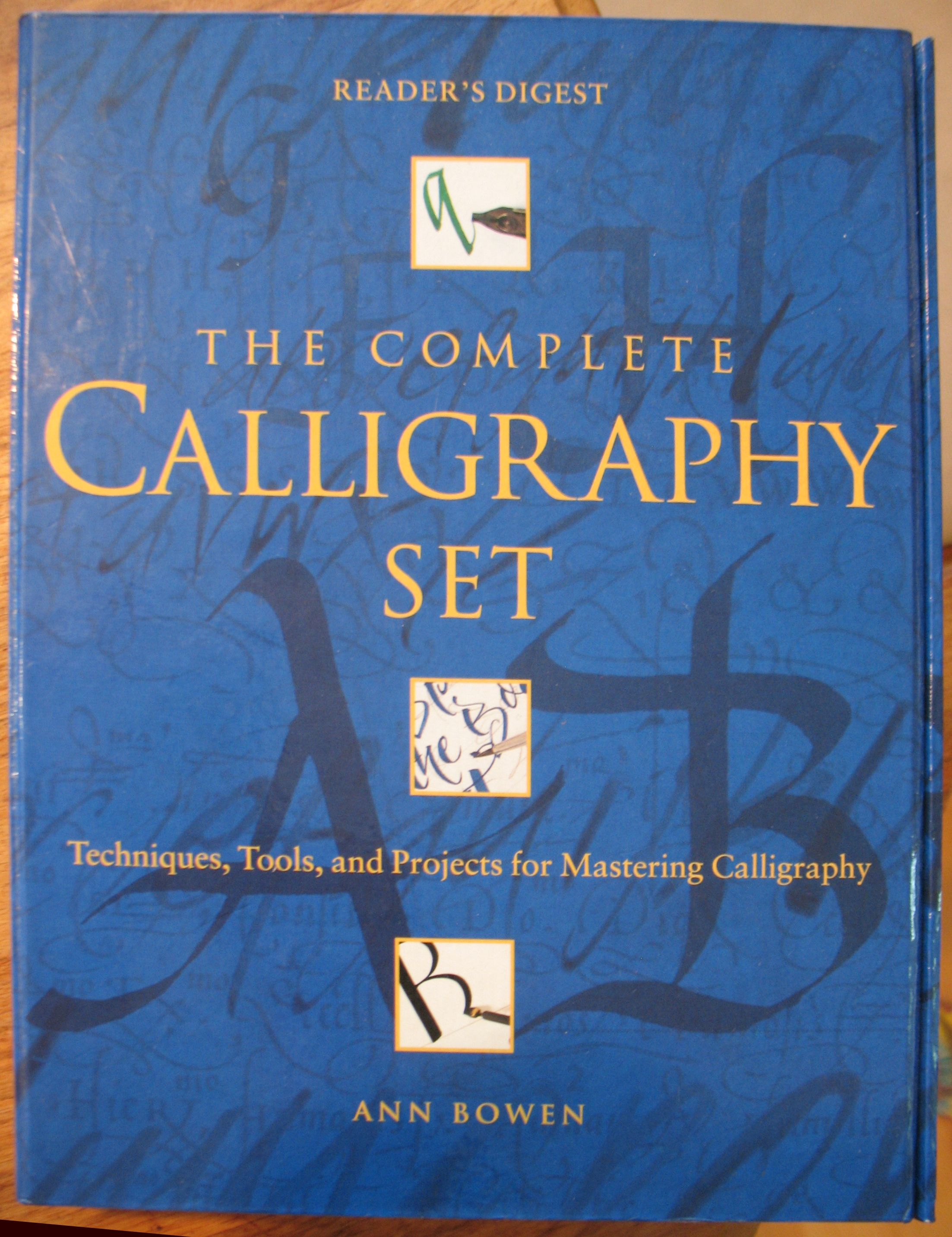 The set includes several pen nibs, a handle, brush, pencil, black ink, and three colours of watercolour paint. Along with these tools and materials, there is a book of projects and a separate book on technique. The latter mentions the problem of the ink not wetting the nibs and suggests that new nibs must be thoroughly cleaned with soap. We’ve tried this to no avail as well. I have to wonder if these particular nibs are coated with some sort of silicone, which would be resistant to soap.