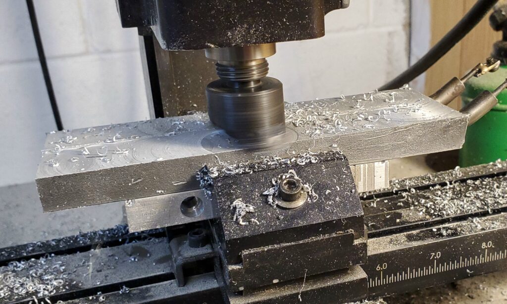 I took a rough measurement of the thickness of the old heater and used my mill to thin out the chosen replacement heater, taking care not to cut into the tubular heater element embedded in the metal block. The particular heater was chosen because the angle of the emerging terminals seemed to be the best fit into the cramped cavity under the pot.