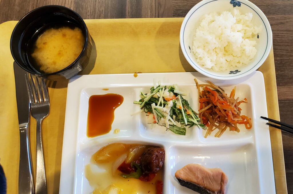 Every day, we would get breakfast in the hotel restaurant. Breakfast was a buffet which included some western items (generally scrambled eggs, bacon or sausages, and bread) but was mostly Japanese food usually also with some other Asian offering like a curry or stir-fry. There was always soup, and a rice dispensing machine—you put your bowl on the stand and press a button for a small, medium or large serving!