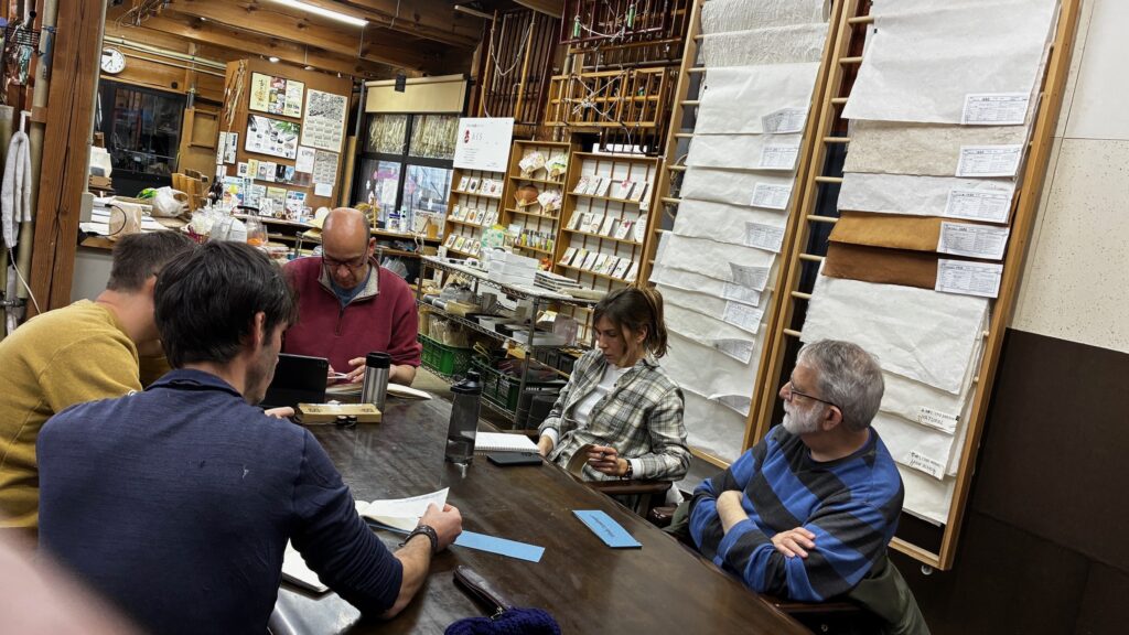 Imai-san is behind the camera for this, and that’s one of his daughters at the table with us. The room dividers are all paper from his studio
