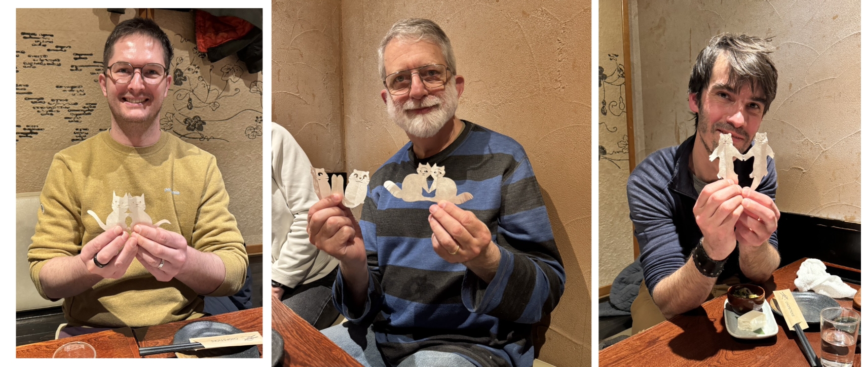 Afterwards we went to dinner in Nagaoka, and while waiting in our private room for the food to arrive, Chihiro-san entertained us with free-hand paper cutouts of animals we requested.