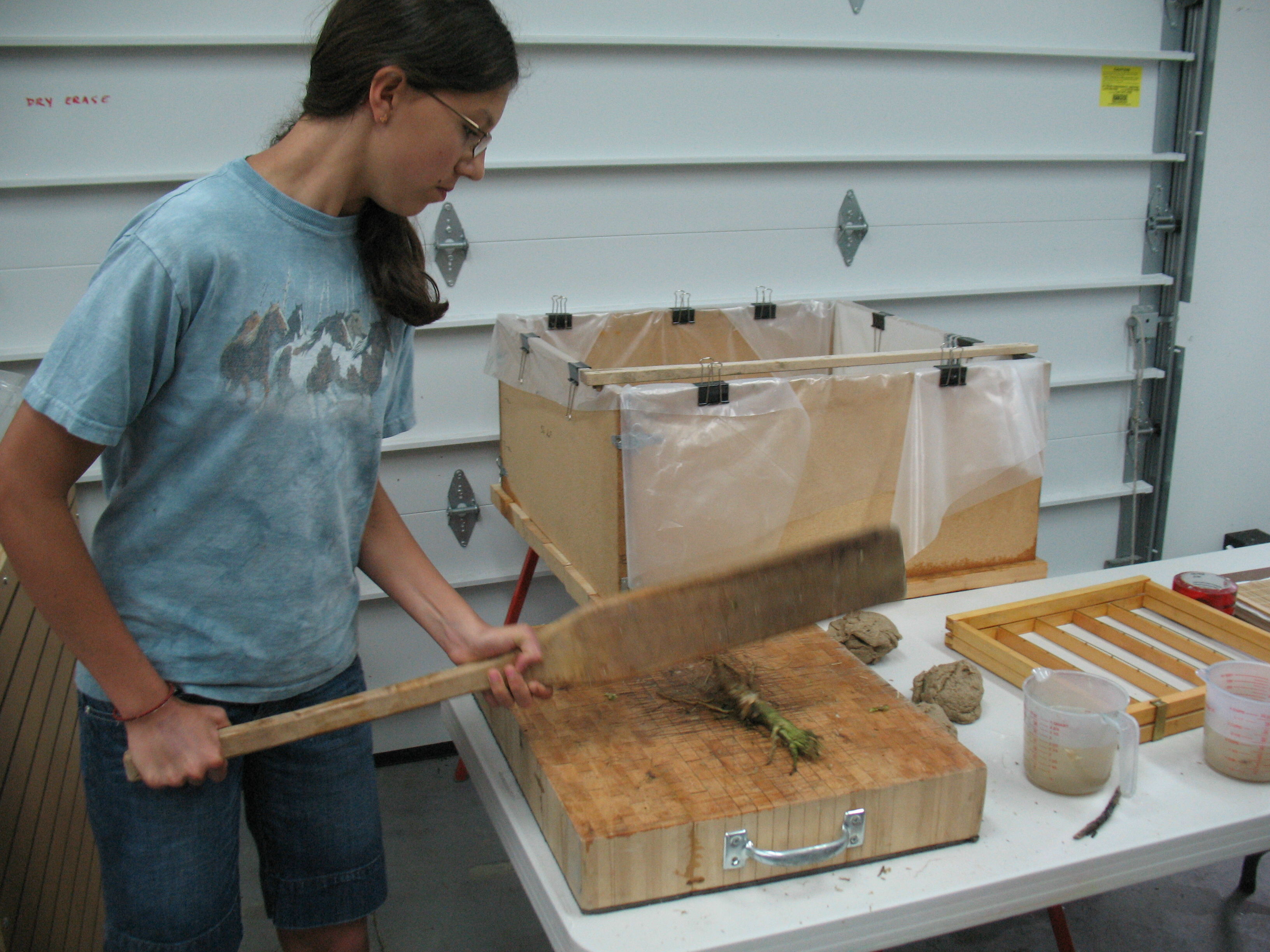 As a diversion from the Japanese sheetforming, which can be frustrating and tiring, we also put together a western-style papermaking setup.
