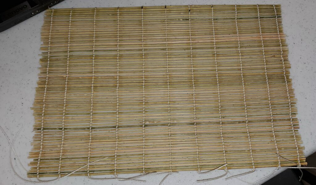 Alex provided some previously-made rudimentary ketas (the frame that supports the su and forms the deckle), with just two frames and ribs to support the su but no hinges or latches, and each of us made a su to fit, about 30×22cm (12×8½″).